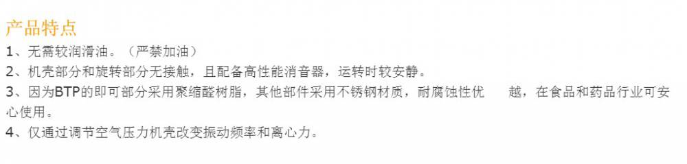 輪式振動器是一款完全無需加油的氣動振動器。使用方法和球型振動器相同,只需供給壓縮空氣即可使裝有偏心塊的齒輪高速運轉,從而產生-的振動,是一款使用方便的振動器。(所供氣源嚴禁加油)由于產生的高速轉動的齒輪部分和機殼部分不接觸的狀態(tài)下產生的振動,所以是一款噪音非常小的振動器。